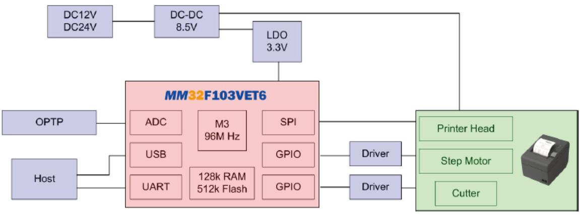 打印機 | MM32F103VET6 | ● 一維、二維碼打印機 ● 票據打印 ● 有線、無線打印 |