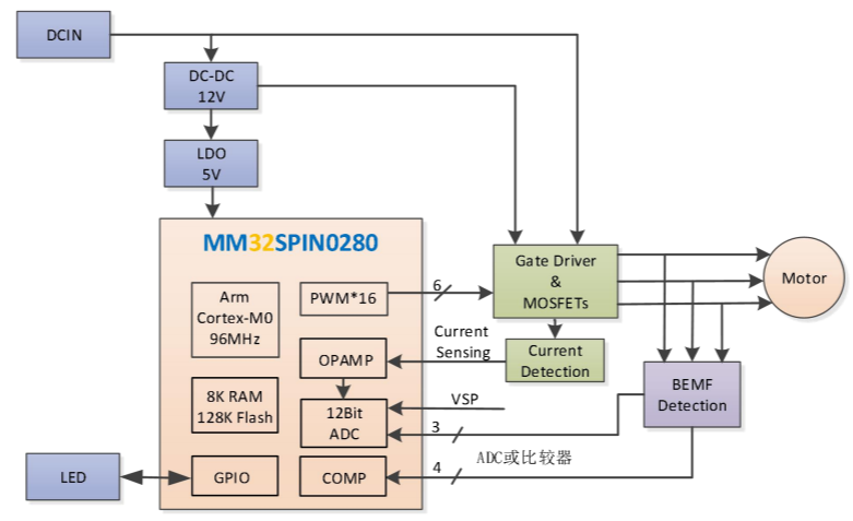 MM32SPIN0280無感方波硬件框圖