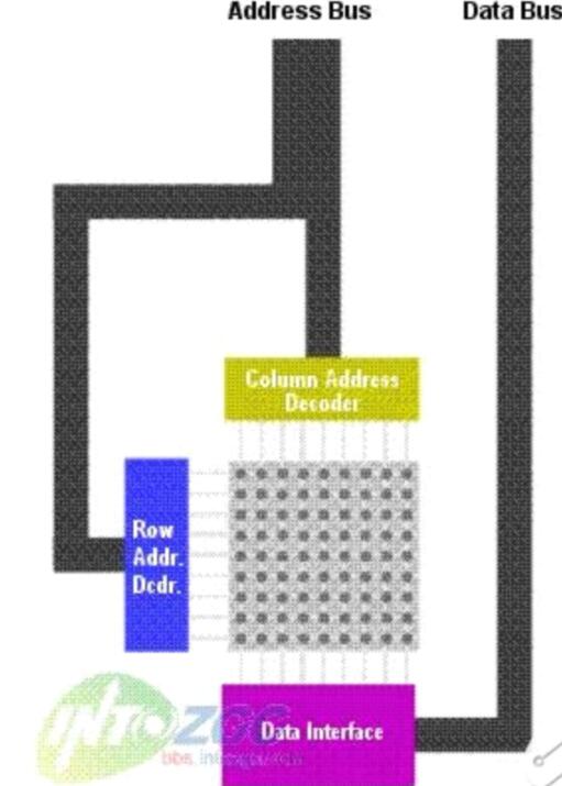 需要注意的是RAM內(nèi)的部存儲(chǔ)信息的矩陣并不是一個(gè)正方形的,也就是行和列的數(shù)目不是相同的--行的數(shù)目比列的數(shù)目少(DRAM)。