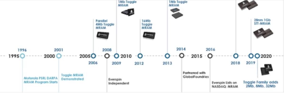 Everspin目前是唯一一家銷售分立的獨(dú)立MRAM芯片的公司,并且自2006年以來一直在商業(yè)化生產(chǎn)ToggleMRAM。
