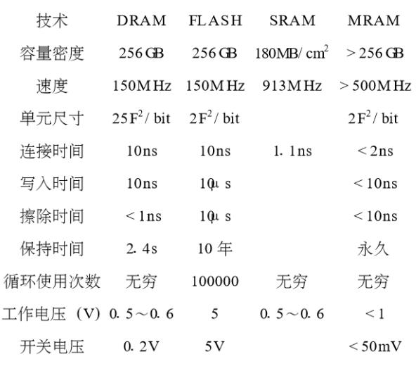 MRAM與現(xiàn)行各類存儲(chǔ)器的比較