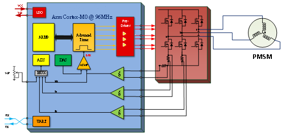 控制方式:雙電阻無感FOC+無級調(diào)速+搖頭電機