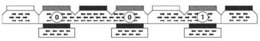 為了寫(xiě)入單個(gè)位,電流通過(guò)存儲(chǔ)線,并且多鐵性元件和自由層的相互作用確定層之間的反平行極性為“ 1”(高電阻),層之間的平行極性為“ 0” (低電阻)。然后,通過(guò)減小存儲(chǔ)線和多鐵性元件之間的交換偏壓來(lái)更改存儲(chǔ)域的磁化強(qiáng)度(請(qǐng)參見(jiàn)上圖)。存儲(chǔ)器域是可獨(dú)立寫(xiě)的,只需要一個(gè)電流輸入即可存儲(chǔ)數(shù)據(jù)。這大大降低了能耗和寫(xiě)入周期所需的時(shí)間,從而提高了成本和性能效率。